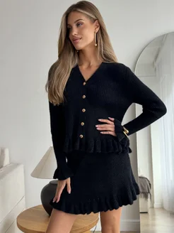 Кардиган трикотажный вязаный с баской и рюшами