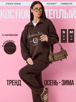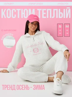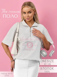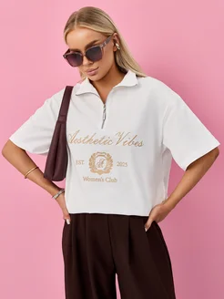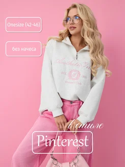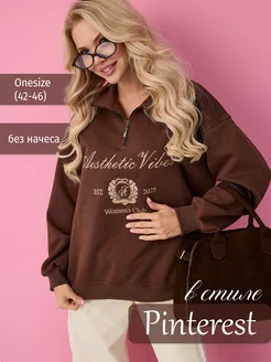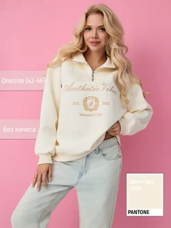 Свитшот женский оверсайз полузамок без начеса с вышивкой