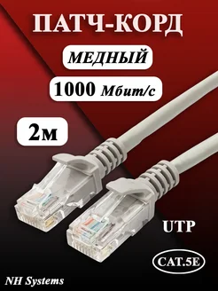 Медный интернет кабель - патч корд 2 м, cat 5e, патчкорд