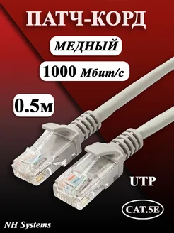 Медный интернет кабель - патч корд 0,5 м, cat 5e, патчкорд
