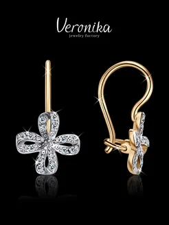 Серьги цветочки с фианитами из серебра 925 пробы позолота