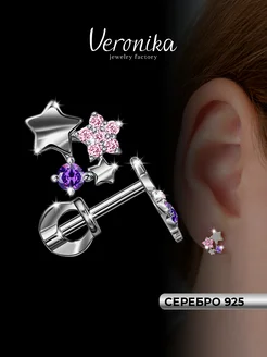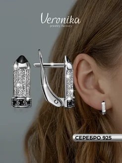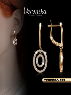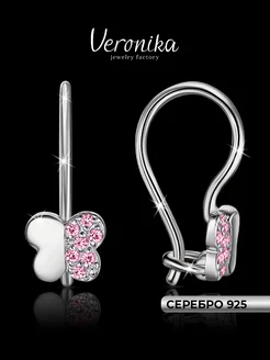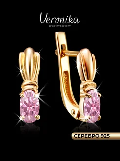 Серьги серебро 925 пробы с позолотой и розовыми фианитами