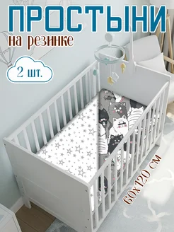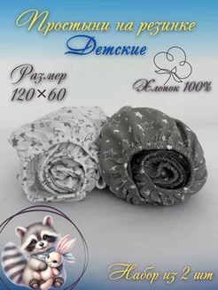 Простыни на резинке для новорожденных 60Х120 поплин - 2 шт