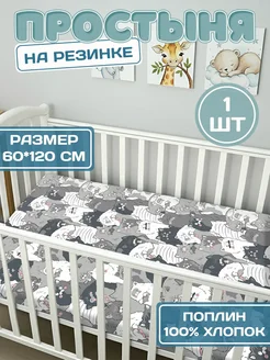 Простыня на резинке для новорожденных 60Х120 поплин - 1 шт