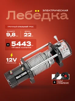 Лебедка 12000 lbs 5443 кг, 12 V стальной трос