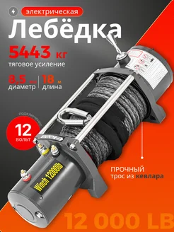 Лебедка 12000 lbs 5443 кг, 12 V кевларовый трос