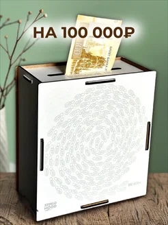 Копилка для денег из дерева белая "100 000 шагов к цели"