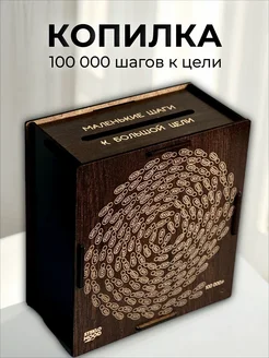 Копилка для денег из дерева темная "100 000 шагов к цели"