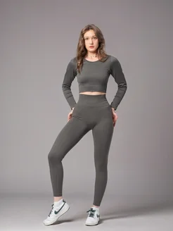Легинсы в рубчик брюки спортивные лосины с пуш ап