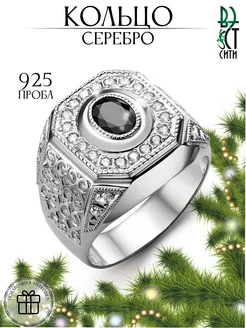 Кольцо серебро 925 пробы с фианитом и орнаментом, печатка