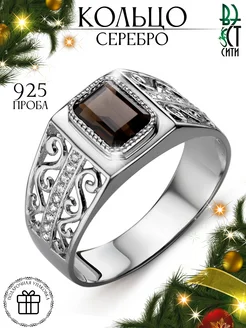 Перстень серебро с раухтопазом, печатка