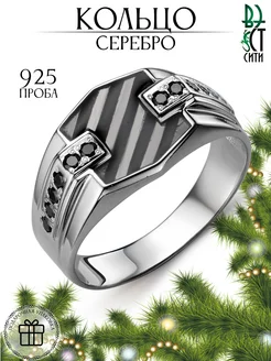 Кольцо серебро с фианитами и эмалью, печатка