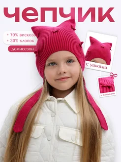 Шапка-чепчик демисезонный вязаный с бантиками