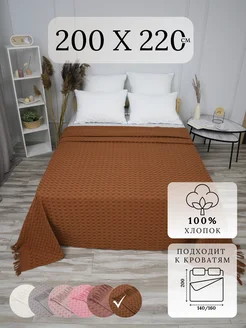 Плед покрывало хлопковое вафельное коричневое 200х220 см