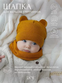 Комплект для новорожденного чепчик утепленный и снуд