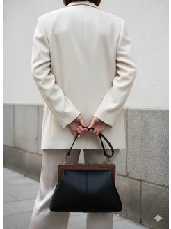 Сумка саквояж на плечо кросс-боди деревянная ручка