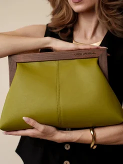 Сумка клатч на плечо кросс-боди деревянная ручка
