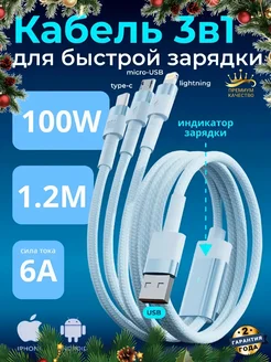 Кабель 3 в 1 для быстрой зарядки телефона USB