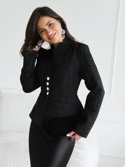 Твидовый пиджак с баской