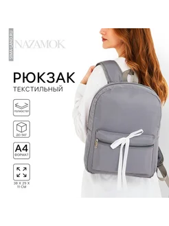Рюкзак школьный текстильный с белой лентой, серый