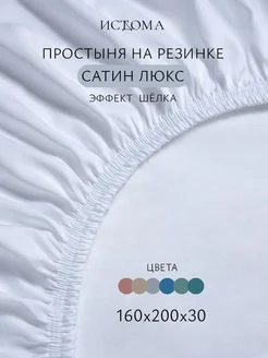 Простыня на резинке 160х200х30 мако-сатин люкс белая