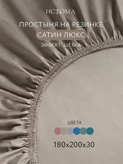 Простыня на резинке 180х200х30 мако-сатин люкс бежевая