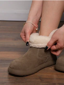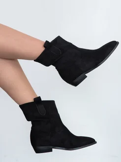 Казаки ботинки демисезонные замшевые на низком каблуке