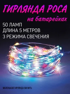 Гирлянда роса нить на батарейках 5м