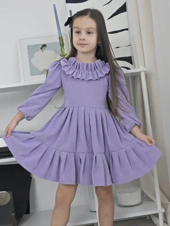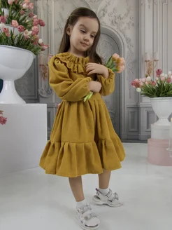 Платье для девочки вельветовое с рюшами и воланами