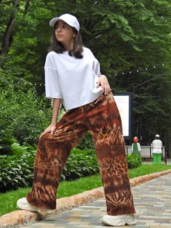 Широкие летние штаны для подростков с принтом