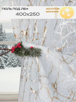 Тюль 400х250 мрамор под лен на шторной ленте в гостиную