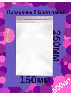 БОПП пакеты 150х250+50 15х25 15*25 см 25(мкм). 500шт