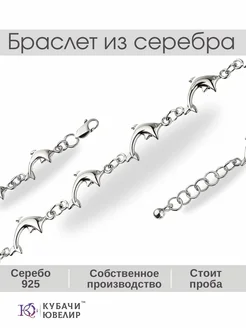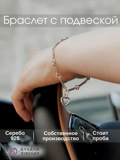 Серебряный браслет на руку Сердечко 925 пробы "Кубачи"