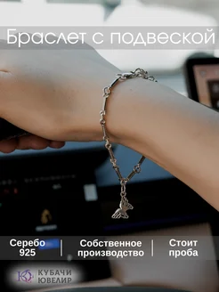 Браслет из серебра на руку c подвеской "Бабочка" 925 пробы
