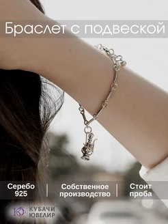 Браслет с подвеской "Кувшин" из серебра 925 пробы