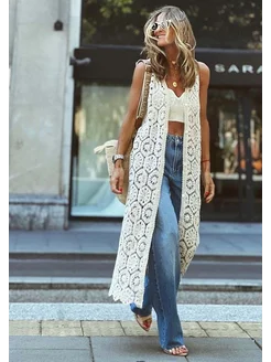 Туника пляжная накидка вязаная платье длинное