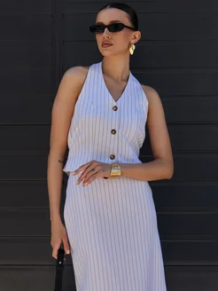 Костюм классический с юбкой и жилетом в полоску