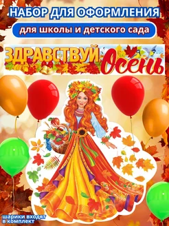 Плакат для оформления"Девушка-Осень" с воздушными шарами