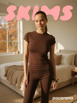 Костюм скимс домашний спортивный со штанами и лонгсливом