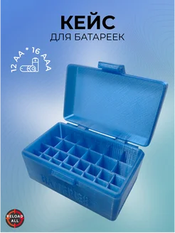 Кейс органайзер для батареек 12 AA + 16 AAA, голубой