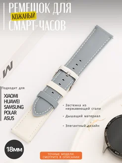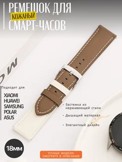Кожаный ремешок для смарт-часов, 18мм, белый с коричневым