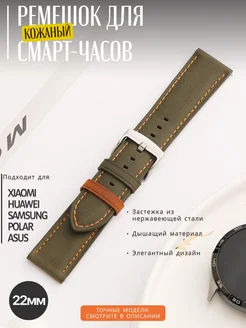 Кожаный ремешок для Huawei watch, Xiaomi, 22мм, зеленый