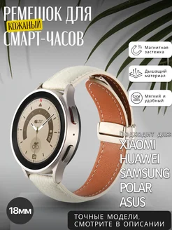Кожаный ремешок для смарт-часов, 18мм белый магнит застежка