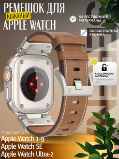 Кожаный ремешок для Apple Watch 1-9 коричневый 42-49мм