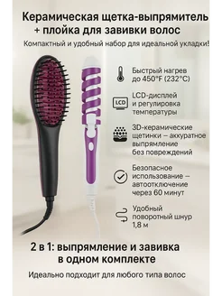Керамическая щетка-выпрямитель + плойка для завивки волос
