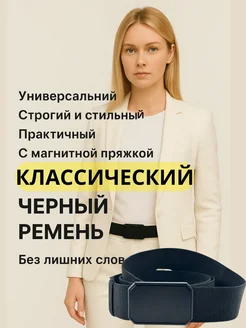 Классический черный ремень с магнитной пряжкой