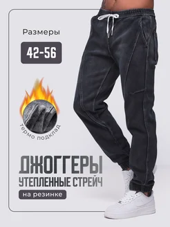 Брюки джинсовые утеплённые зимние на резинке повседневные