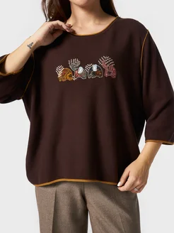 Джемпер с принтом с удлиненным рукавом трикотажный