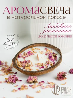 Свеча в кокосе ароматическая с деревянным фитилем