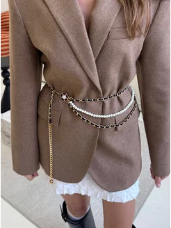 Цепочка на пояс украшение ремень с жемчугом на одежду